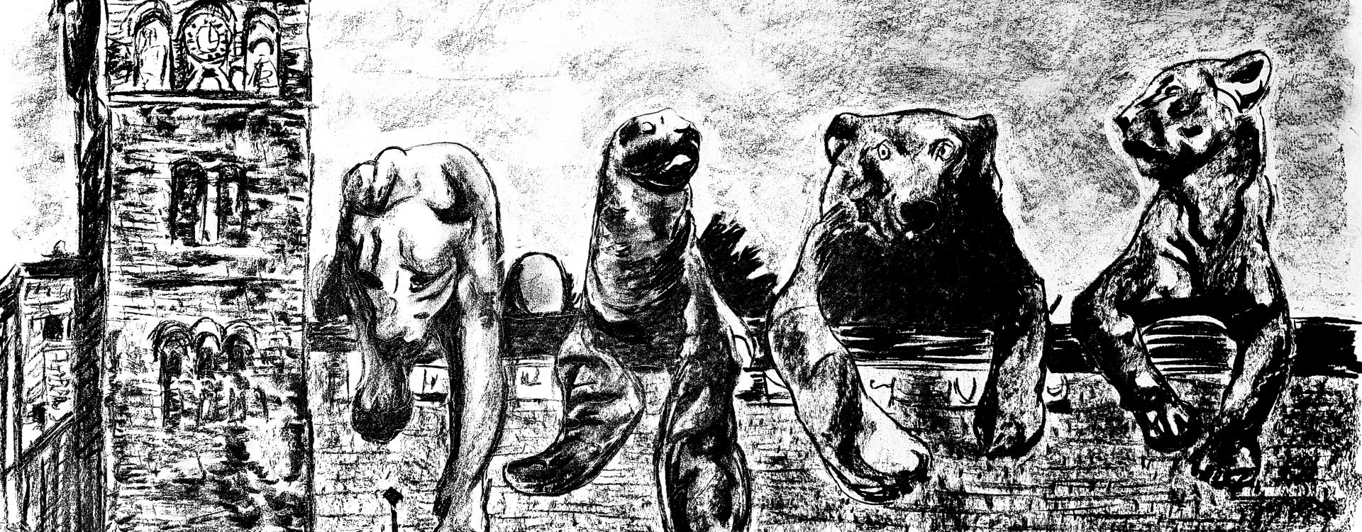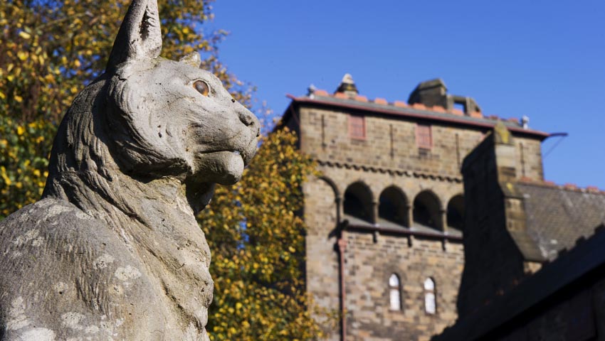 This especially commissioned piece of art was created for us by local artist, Nathan Wyburn and depicts four members of Cardiff’s much loved Animal Wall in a reimagined position next to the Castle’s Victorian Clock Tower.