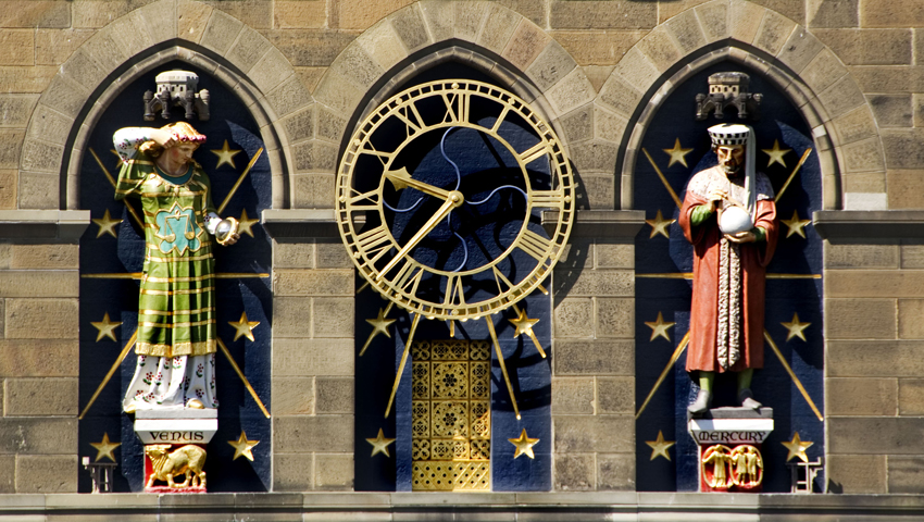 It was designed by William Burges in 1866 as part of a scheme to renovate the Castle’s south wall and work began in 1869. The tower is built on the foundations of a Roman bastion at the South West angle of the medieval curtain wall. The faces of the clock are flanked by 10ft (3m) tall statues representing the principal planets with their respective zodiac on the pedestals. The tower’s bell is a half-scale model of the one in Victoria Tower, Westminster.