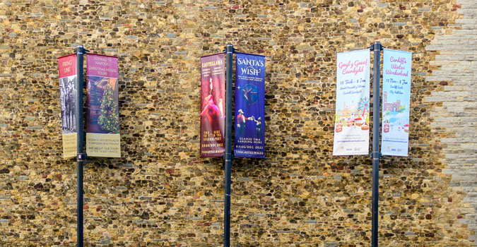 - We have 6 lamp post banners sites outside the Castle’s main entrance on Castle Street. These occupy a busy city centre location with high visibility for passing traffic and footfall.