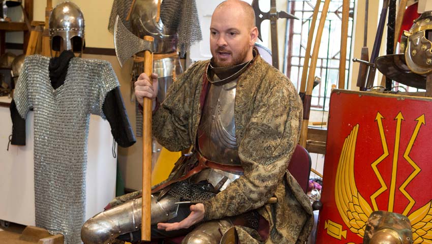This workshop gives pupils the opportunity to learn about castles, knights, armour and weapons in an interactive session with a “knight”, who will teach pupils about a variety of medieval armour and weapons and their use in battle.