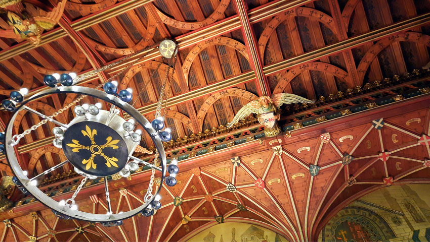 However, all the surface decoration, ceiling and floors are in fact a Victorian re-imagining of a noble hall from the Middle Ages and took nearly 15 years to complete.