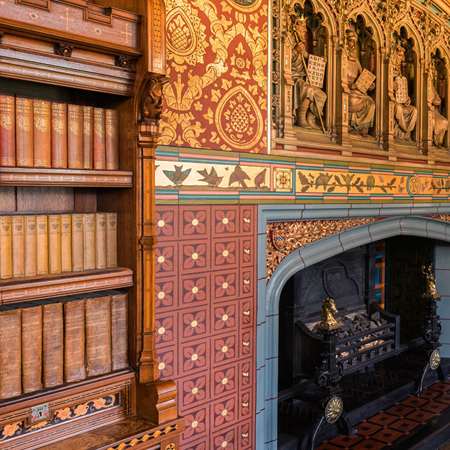 The core of the house at Cardiff Castle dates from the 1400s, with substantial extensions and alterations having been made over the centuries. However, the spectacular interiors seen today are all the result of a collaboration between the wealthy 3rd Marquess of Bute, a Victorian aristocrat, and the genius art-architect, William Burges.
